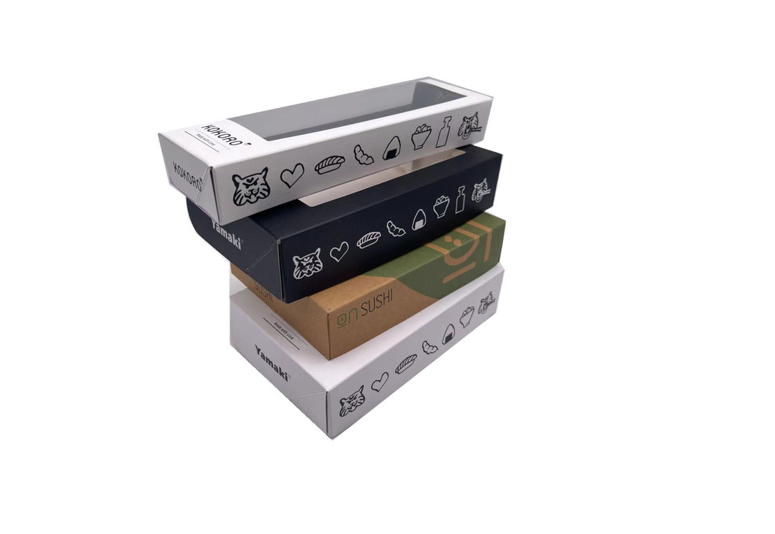 Hộp giấy bao bì có thể gập lại với cửa sổ PVC để đóng gói Sushi
