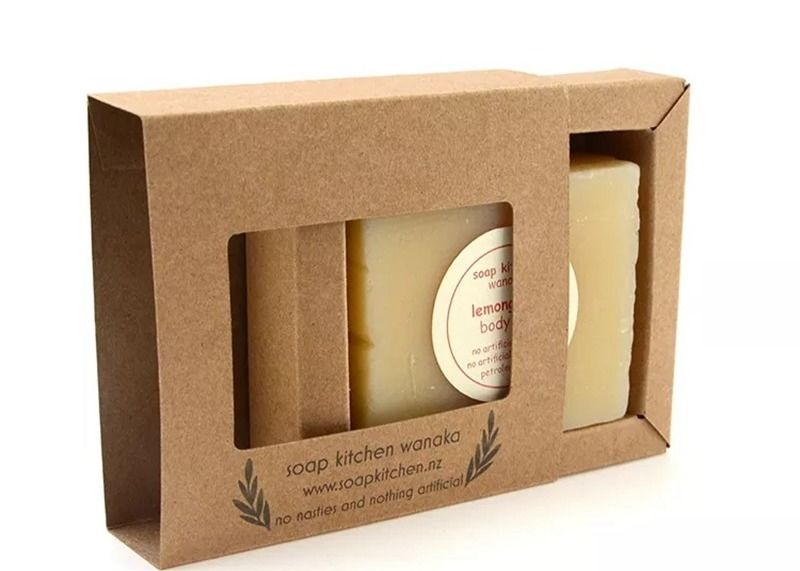 Hộp xà phòng thủ công bằng giấy Kraft màu nâu tùy chỉnh với cửa sổ trong suốt